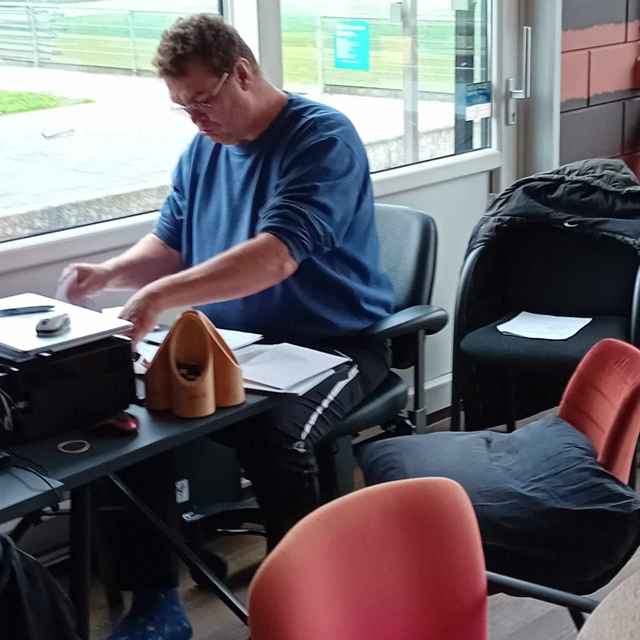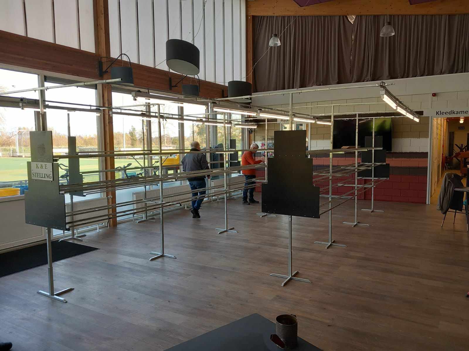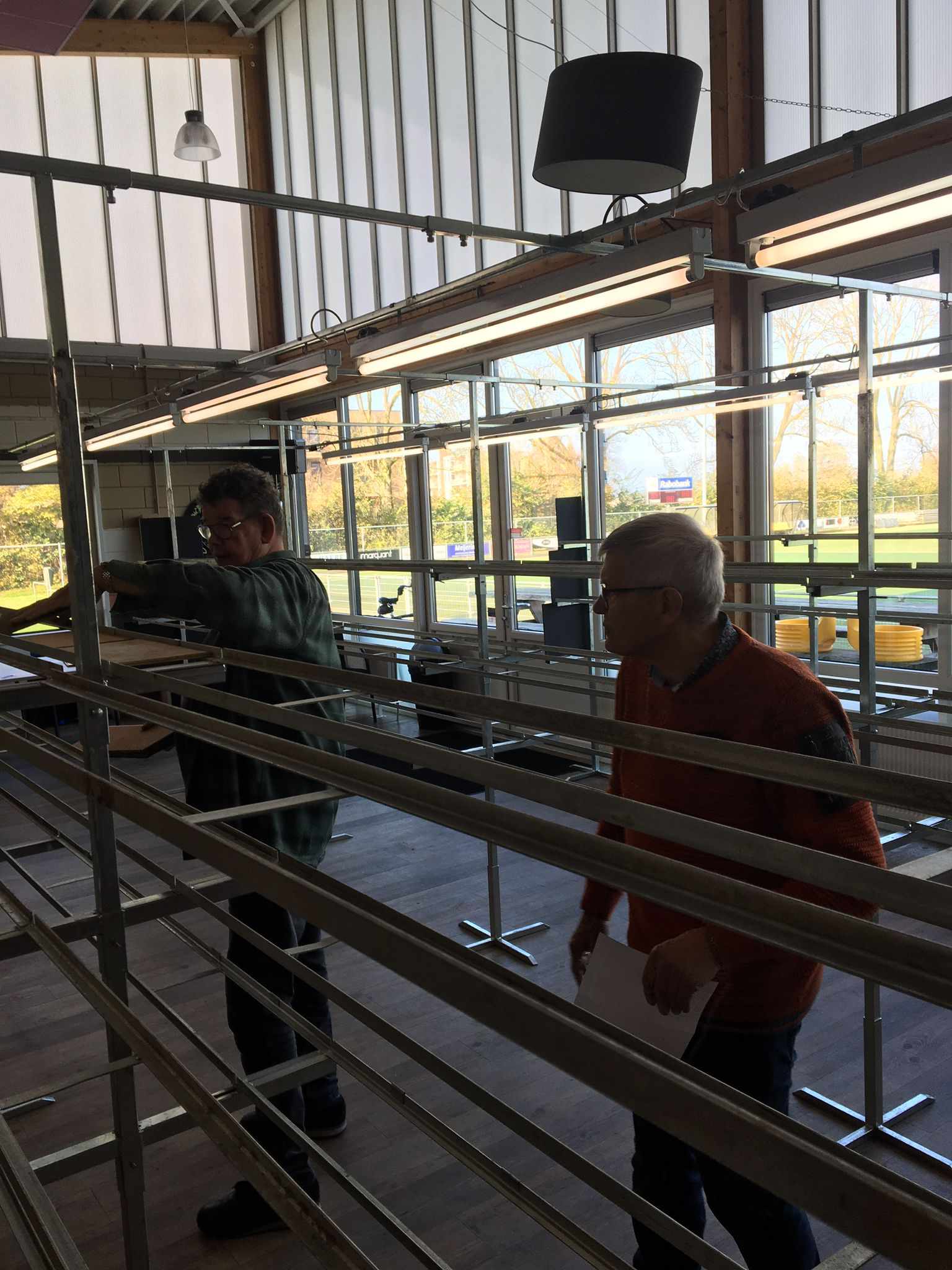 En natuurlijk moet eerst de stelling worden opgebouwd. Het vervoer regelt Stefan Scholte en met een groepje vrijwilligers worden de stelingen verplaatst van Lutten naar Kantine van Juventa. De indeling wordt geregeld door Hendrikus Edelijn. Arnold Tempelman en Jan Ploeg doen de adminstratie en Arnold ontwerpt de catalogus en zorgt dat dit bij de drukker terecht komt.