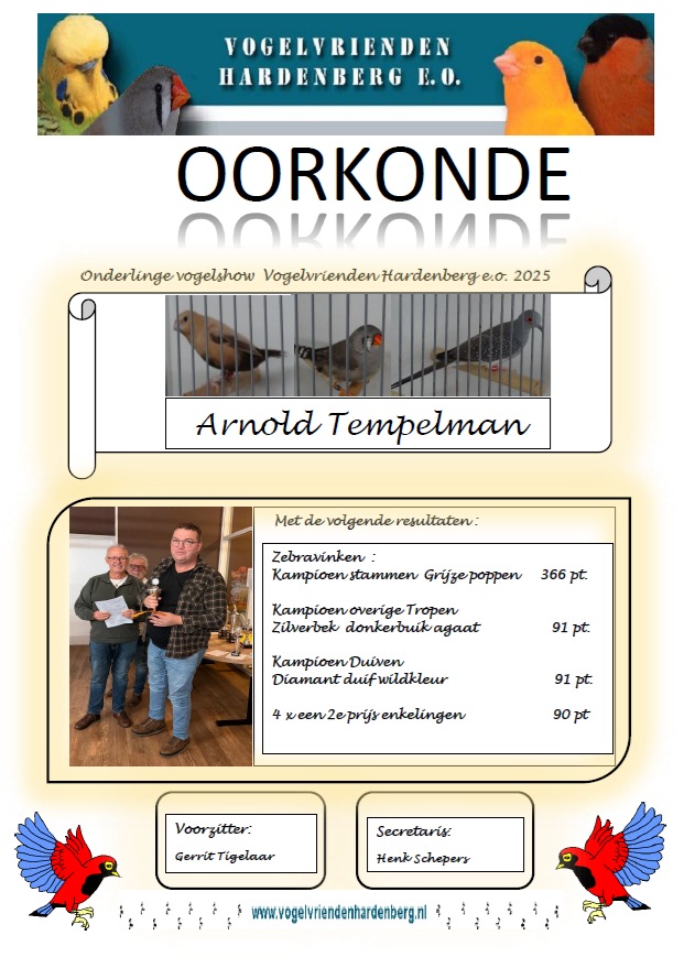 • Klik hier! Film onderlinge tentoonstelling TT 2011 van Vogelvrienden Hardenberg e.o.